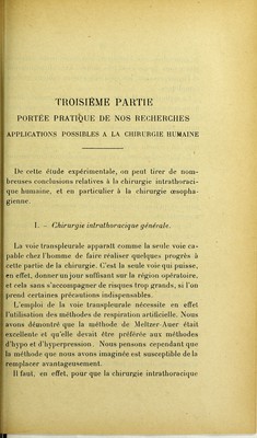 Chirurgie intrathoracique expérimentale : étude de la suture oesophagienne : applications possibles de nos recherches à la chirurgie humaine : thèse présentée et publiquement soutenue devant la Faculté de médecine de Montpellier le 17 juin 1913 / par Noël Lapeyre.