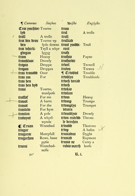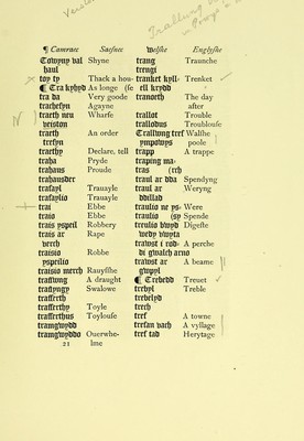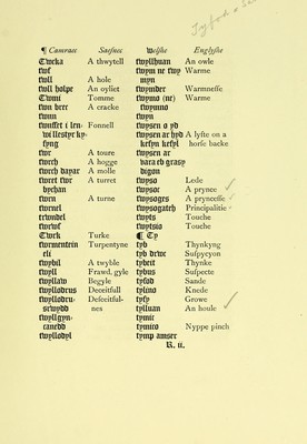 Credit: A dictionary in Englyshe and Welshe : moche necessary to all such Welshemen as wil spedly learne the englyshe tõgue thought unto the kynges majestie very mete to be sette for the to the use of his graces subjectes in Wales whereunto is p̃fixed a little treatyse of the englyshe pronounciacion of the letters / by Wyllyam Salesbury. Source: Wellcome Collection.