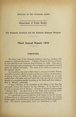 Annual report / Department of Public Health, Research Institute and Endemic Diseases Hospital.