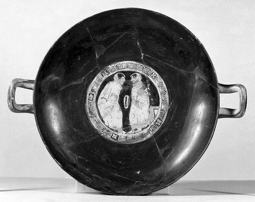Credit: M0016190EC: Greek Attic kylix (wine cup) decorated with figures of youths, 4th century BC. Source: Wellcome Collection.
