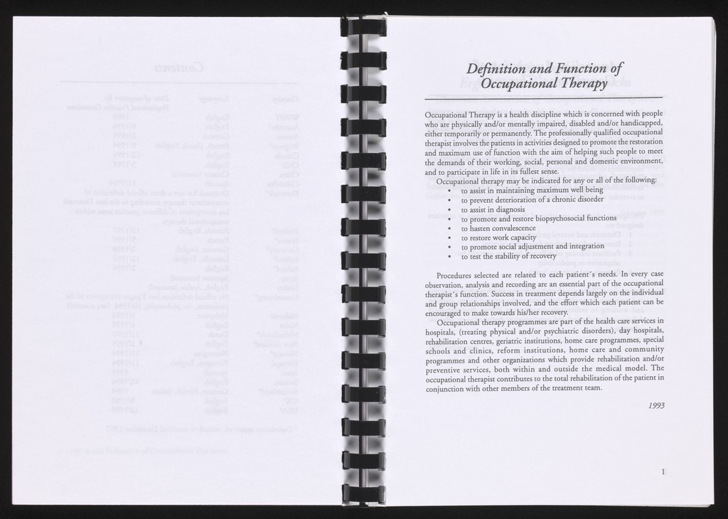 Credit: Definitions of Occupational Therapy and Glossary. Source: Wellcome Collection.
