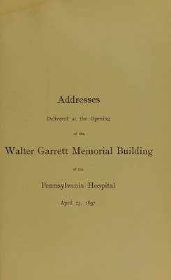 Addresses delivered at the opening of the Walter Garrett Memorial Building of the Pennsylvania Hospital, April 23, 1897.