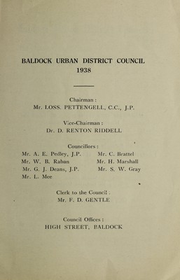 [Report 1938] / Medical Officer of Health, Baldock U.D.C.