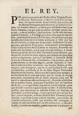 Credit: Secretos medicos, y chirurgicos / del doctor Don Juan Curbo Semmedo ; traducidos de lengua vulgar portuguesa en castellana, por Thomas Cortijo. Con un breve diccionario Lusitanico Castellano, para los que tienen las obras de dicho autor. Source: Wellcome Collection.