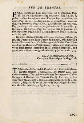 Secretos medicos, y chirurgicos / del doctor Don Juan Curbo Semmedo ; traducidos de lengua vulgar portuguesa en castellana, por Thomas Cortijo. Con un breve diccionario Lusitanico Castellano, para los que tienen las obras de dicho autor.