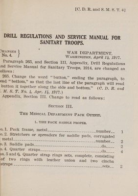 Credit: Drill regulations and service manual for sanitary troops, United States Army, 1914 : corrected to April 15, 1917 (changes nos. 1 to 4). Source: Wellcome Collection.