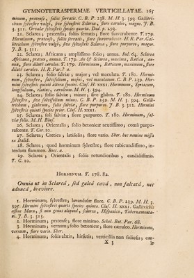 ![\ iz. Galeopfis} foetida} anguitifolia} humilior. H. Chelfey. co. 13. Galeopfis} paluftris} folio betonicae latifiimo } flore varie¬ gato. co. ; 14. Galeopfis} Alpina} betonicae folio} flore variegato. Y. i8f* P feudo-ftachys Alpina. C. BsP. 2.36. Stachys ? qu£ Galeopfis Alpina, be¬ tonica folio 5 flore variegato. Vaill. b. H. SCLAREA. Y. I79. 8l. Foliola verticillis fabjecla diverfie forni£ d ceteris. Folia inferiora rugofa j texturae rarioris. Calix tubulofus 5 quinque fidus quafi bilabiatus. Malfi. FI. 41. 118. Galea falcata ^ longa adunca ^ barba tripartita ^ fegmen- tum medium bifidum 3 & cavum. Malfi. fAn. FI. 43. 141. 47. 168. Flores plerumque feni nodos caulium circulatim coronant ^ & quafi ffiicati componuntur. Semina fubrotunda. y- Sclarea. 2lz£. /c. 373. 2. 179. Horminum, Sciar ea diblum. C. B. P. 2,38. Horminum 9 fylveftre , I. Cluf. H. xxvi 11. Horminum horten- fe. H.Eyft. Aft. 0. 8. P. 2. Fig. 1. Gallitrichum fativum. J. B. 3. 309. Orvala. Dod. p. 292. Horminum 5 fativum , vulgare 5 five Sclarea. M. H. 3. 392. b. f. 2. Sclarea} flore albo. b. 3. Sclarea} Syriaca} flore albo. P. 179. Horminum Syriacum. C. B.P. 238. Prodr. iie\.Ac,&Defer. M.H. 3. 392. H.Eyft. ALft. 0.8. F. 2. Fig. 2.' Horminum Syriacum 9 glutinofum 9 JEthiopidis folio , flore nivee. H. Mauro c. Horminum* Syriacum5 Sclarea ditio congener. An Bifermas Camerarii ? P2. P. P^r. b. 4. Sclarea} Orientalis} folio rotundo} flore magno«, partim albo* partim purpurafeente. T. Cor. 10. FI. y. Sclarea} Luiitanica } glutinofi} ampliflimo folio. 2. 179. <5. Sclarea} vulgaris* lanuginofa} ampliflimo folio P 179. Hormi¬ num, Aethiopicum 9 incanum, ALthiopis diffium, foliis fimuofis. II. L. A- thiopis5 foliis finuofis. C. B. P. 241. M. //. 3. 392. Alt hi opis multis. J. B. 3. 317. Athiopis. Dochp. 148. //. Eyft. ALft. 0. 8. F. 3. Hg 1. b. 7. Sclarea} laciniatis foliis. P. 179. ALthiopis5 laciniatis foliis. Bar~ rei. Ic. 188. Ai. //. 3. 393* b. H. 8. Sclarea } Sicula } flolio argenteo 9 fubrotundo. Athiopis, tota argentea9 perennis, lanuginofa, Cupam. C. //. 9. Sclarea} iEthiopica} folio fubrotundo} perennis. Ind. 6]. Scia-](https://iiif.wellcomecollection.org/image/b30412705_0223.jp2/full/800%2C/0/default.jpg)