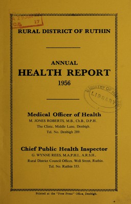 Credit: [Report 1956] / Medical Officer of Health, Ruthin R.D.C. Source: Wellcome Collection.