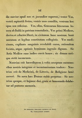 Credit: Oratio in Collegii Regalis Medicorum Londinensis aedibus novis habita die dedicationis, Junii XXV, M.DCCCXXV / ab Henrico Halford. Source: Wellcome Collection.