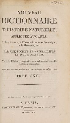 Nouveau dictionnaire d'histoire naturelle, appliquée aux arts, à l'agriculture, à l'économie rurale et domestique, à la médecine, etc / Par une société de naturalistes et d'agriculteurs.