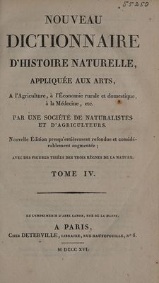 Nouveau dictionnaire d'histoire naturelle, appliquée aux arts, à l'agriculture, à l'économie rurale et domestique, à la médecine, etc / Par une société de naturalistes et d'agriculteurs.