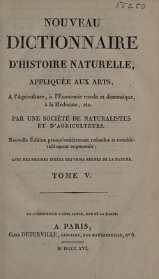 Nouveau dictionnaire d'histoire naturelle, appliquée aux arts, à l'agriculture, à l'économie rurale et domestique, à la médecine, etc / Par une société de naturalistes et d'agriculteurs.