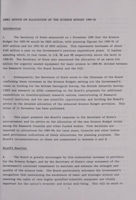 Allocations of the science budget 1989-92 : advice to the Secretary of State for Education & Science from the Advisory Board for the Research Councils.