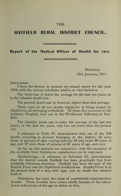 [Report 1910] / Medical Officer of Health, Hatfield R.D.C.