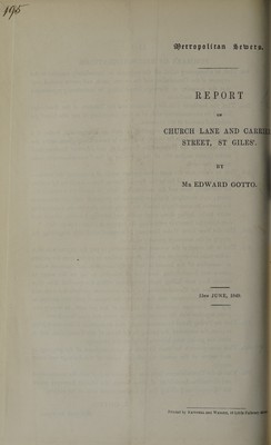 Report on Church Lane and Carrier Street, St Giles' / By Mr Edward Gotto. 15th June, 1849.