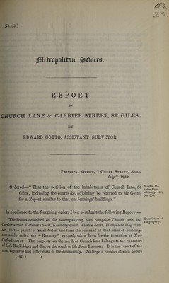 Report on Church Lane and Carrier Street, St Giles' / By Mr Edward Gotto. 15th June, 1849.