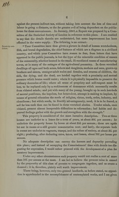 ![23. No. 55.] jfletropolttan REPORT ON CHURCH LANE & CARRIER STREET, ST GILES’, BY EDWARD GOTTO, ASSISTANT SURVEYOR. Principal Office, 1 Greek Street, Soho, July 7, 1849. Ordered—“ That the petition of the inhabitants of Church lane, St Giles’, including the courts &c. adjoining, be referred to Mr Gotto, for a Report similar to that on Jennings’ buildings.” In obedience to the foregoing order, I beg to submit the following Report:— The houses described on the accompanying plan comprise Church lane and Carrier street, Fletcher’s court, Kennedy court, Walsh’s court, Hampshire Hog yard, &c., in the parish of Saint Giles, and form the remnant of that mass of buildings commonly called the “ Rookery,” recently taken down for the formation of New Oxford street. The property on the north of Church lane belongs to the executors of Col. Buckridge, and that on the south to Sir John Hanmer. It is the resort of the most depraved and filthy class of the community. So large a number of such houses ( 47 ) a Works’ Mi¬ nutes Com¬ mittee, p, 441, No. 505. Description of the property.](https://iiif.wellcomecollection.org/image/b31917367_0001.jp2/full/800%2C/0/default.jpg)