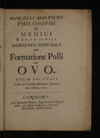 Marcelli Malpighii ... Dissertatio epistolica de formatione pulli in ovo. Regiae Societati, Londini ad scientiam naturalem promovendam institutae, dicata / [Marcello Malpighi]. Public Domain Mark. Source: Wellcome Collection.