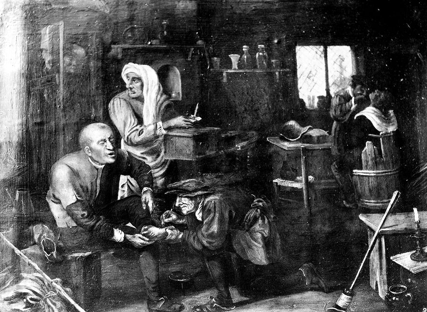 Credit: M0013717: The chiropodist, oil painting. Source: Wellcome Collection.