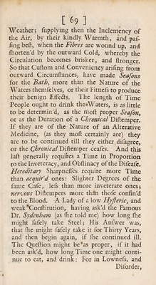 Credit: An essay of the true nature and due method of treating the gout together with an account of the nature and quality of Bath waters, the manner of using them and the diseases in which they are proper: as also, of the nature and cure of most chronical distempers, not published before / [George Cheyne]. Source: Wellcome Collection.