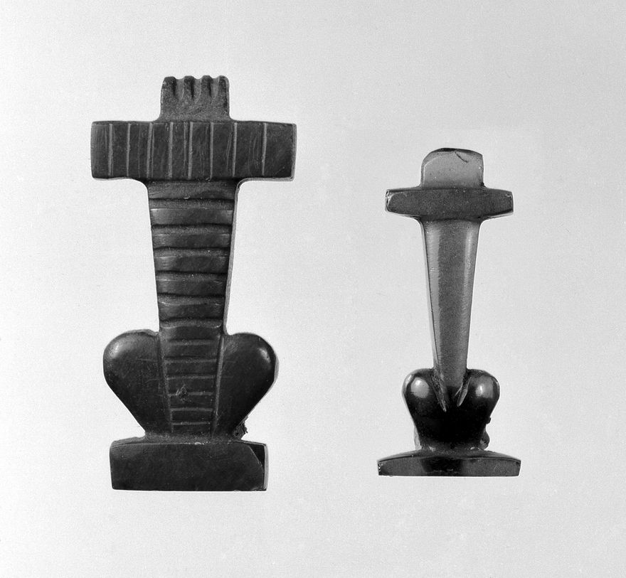 Credit: M0016456: Two Egyptian amulets shaped as the Sema symbol of unity. Source: Wellcome Collection.
