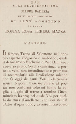 Per la solenne professione de' sacri voti nell'insigne munistero di Sant'Agostino in Parma di Donna Rosa Serafina Luigia, al secolo ... Rosa Mazza, sonetti / [Angelo Mazza].