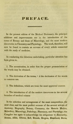 Credit: Lexicon medicum, or, Medical dictionary : containing an explanation of the terms in anatomy, botany, chemistry, materia medica, midwifery, mineralogy, pharmacy, physiology, practice of physic, surgery, and the various branches of natural philosophy connected with medicine : selected, arranged, and compiled from the best authors / By Robert Hooper. In two volumes. Source: Wellcome Collection.