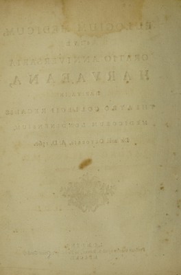 Credit: Eulogium medicum, sive oratio anniversaria Harvaeana, habita in theatro Collegii Regalis Medicorum Londinensium, die xviii Octobris, A.D. 1760. Source: Wellcome Collection.