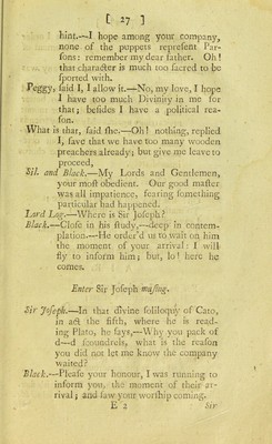 The philosophical puppet-show, or, Snip's inauguration to the President's Chair : addressed to Sir J[oseph] B[anks], barōnetos, a celebrated conoisseur in chickweed, caterpillars, black beetles, butterflies and cockle-shells / By Simon Snip [pseud].