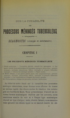 Sur la curabilité des processus méningés tuberculeux : diagnostic (clinique et laboratoire) : thèse présentée et publiquement soutenue à la Faculté de médecine de Montpellier le 31 juillet 1903 / par Paul Pagès.