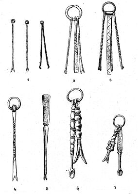 Credit: M0015085: Illustration of Iron Age toilette instruments. Source: Wellcome Collection.