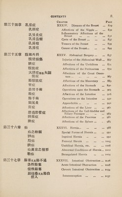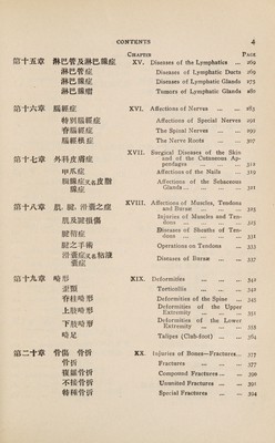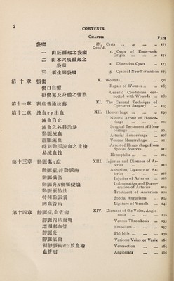 ![& CONSENTS Chapter 驚十章 第十一璋 第十二章 雜千S寧 簇十四章 袋瘤 一由胚而起么袋瘤 二由本巧痕而趙之 鐵幫 S新生綱袋瘤 Pa巧 Lysts ,‘• ••• 》 *••夏八 Cont’d. 1. Cysts of Embryonic Origin .172 2. Distention Cysts ... 173 3. Cysts of New Formation 173 賴傷 傷口自•癒 損傷累及身體么储形 劑症普通技藝 流血义名出血 流血自化 流]fii之外科治法 動脈流化 靜脈流血 特別動脈流化之止法 易流化性 動脈傷及遮 動脈囊、縛動脈術 動脈損傷 動脈炎及動脈變類 動脈囊治法 特禪動脈囊 縛血管術 靜脈症V血管磯 靜脈內結化塊 漂圃塞血蠻 J靜脈炎 靜脈痕曲 削靜脈術或目放血術 血管癖 X. Wounds. 巧6 Repair of Wounds. i85 General Conditions con¬ nected with Wounds ... 189 KI. The General Technique of Operative Surgery ... 巧3 XII. Hemorrhage.- 199 Natural Arrest of Hemor- rhage . … 202 Surgical Treatment of Hem¬ orrhage ... ... ... 204 Arterial Hemorrhage ... 308 Venous Hemorrhage ... 211 Arrest of Hemorrhage from Special Sources. 212 Hemophilia.. 214 XIII. Injuries and Diseases of Ar¬ teries ... ... … 3i6 Aneurism, Ligature of Ar¬ teries ... ... ... 216 Injuries of Arteries ... 21贫 Inflammation and Degeu* eratioii of Arteries ... 319 Treatment of Aneurism 229 Special Aneurisms ... 234 Ligature of Vessels _ 241 XIV. Diseases of the Veins, Angio¬ mata . ... 255 Venous Thrombosis 巧5 Embolism.. 257 Phlebitis.. 巧9 Varicose Veins or Varix a6i Venesection ... •一 碱 Angiomata — … 碱](https://iiif.wellcomecollection.org/image/b31362813_0001_1368.jp2/full/800%2C/0/default.jpg)