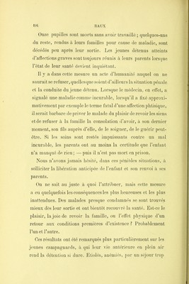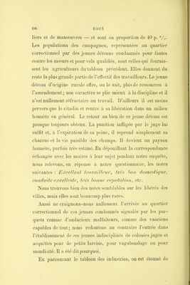 Nos jeunes détenus : étude sur l’enfance coupable avant, pendant et après son séjour au quartier correctionnel / par M. Raux.