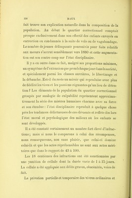 Nos jeunes détenus : étude sur l’enfance coupable avant, pendant et après son séjour au quartier correctionnel / par M. Raux.
