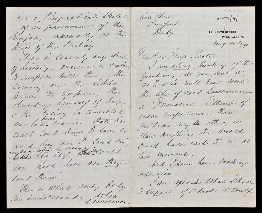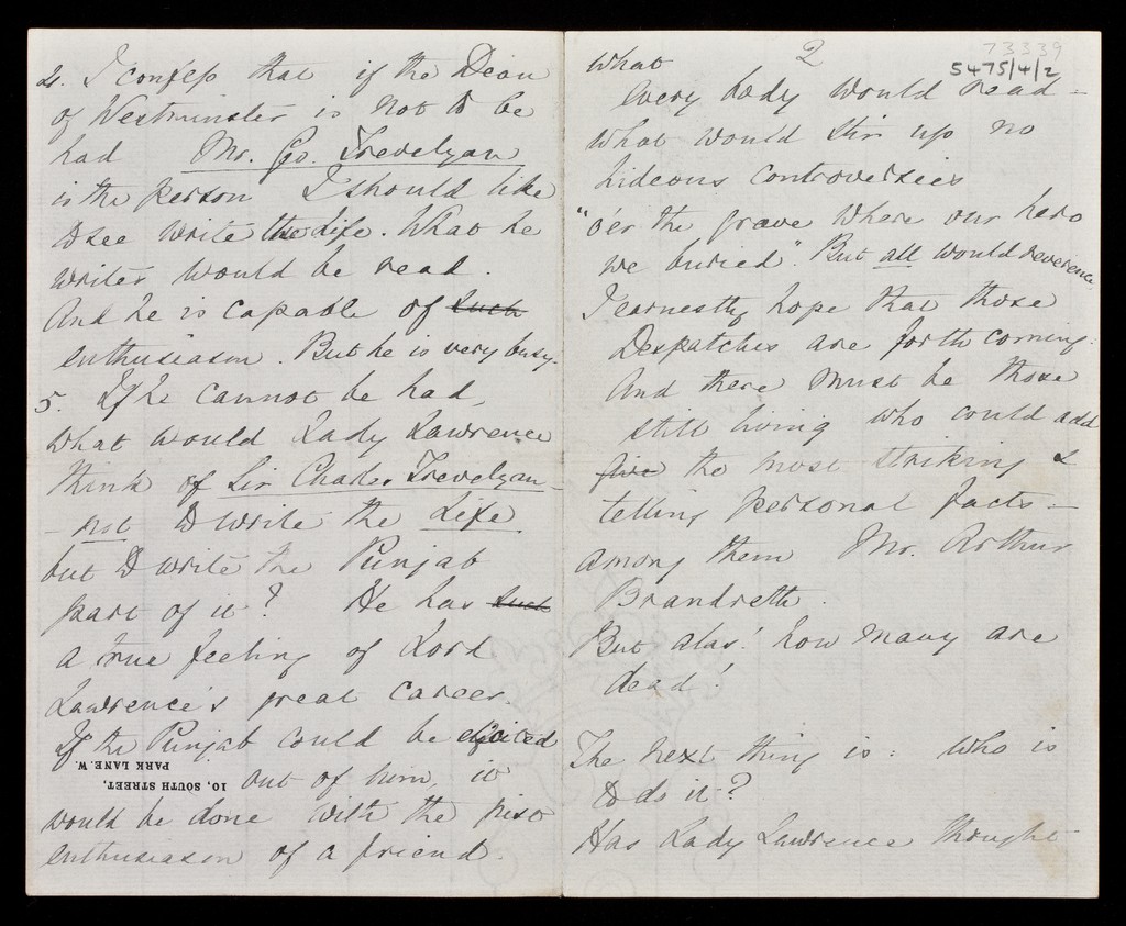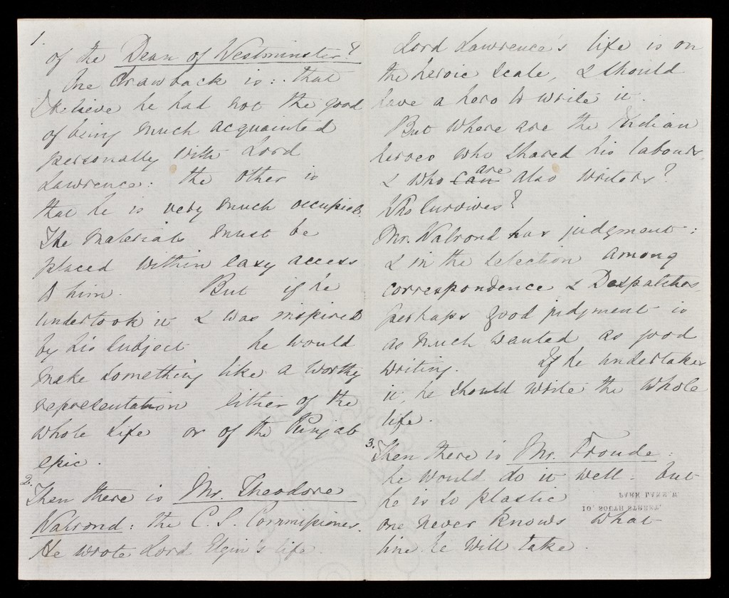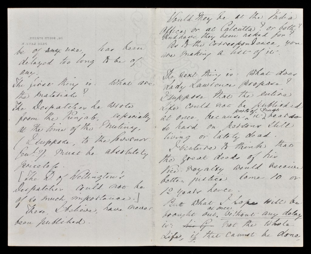 Credit: Letters to Miss Louisa Gaster, private secretary to John Lawrence. Source: Wellcome Collection.