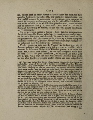 ![( 26 ) len 5 vooral daar de Heer Büffon de zyne onder den naam van Suri- naamfche Ratten gekreegen had (F), ten waare alles zamenftemde, om den twyfFel omtrent de woonplaats van deze zoort weg te neemen', en vooral de eenparige toeflemming van alle de Hollandfche Liefhebbers, van welke dezelve uit de Oofl-Indiën gezonden word, onder anderen had de beroemde Heer J. A. Schlosser, Med, Doêi. en Lid van het Koninglyk Genoodfchap te Londen , er een van een \Vriend uit Amboi- ne (O gekreegen. Om myn gevoelen verder te flaaven, dient, dat deze zoort nooit on- dar de Surinaamfche Dieren welke jaarlyks overkomen gevonden word; en dat noch Marcgraav noch iemand, die over de Americaanfche Die¬ ren gefchreeven heeft,deze zoort optelt, fchoon zy in haare woonplaat- zen niet zeldzaam zyn, gelyk de veelheid vooral van jonge en ongeboor- ne welke men in de Cabinetten vind, aantoonen. Verder vinden wy deze zoort by Valentyn, die haar zeker niet uit America gekregen had, naauwkeurig befchreeven, als een Dier, dat in Amhoina en de verdere Moluccifche Eilanden gemeen is en onder den Jiaam van Coescoes zeer bekend , en om zyn aartigheid maakt men het tam. —— Het geen Valentyn en Nieuw OoJl^Indiën lom. lil. p. 272. Jeqq.) zegt van onze Ooft-Indifche Buidelrat (van welke hy een aller flegtfle afbeelding geeft,) (^) zyn van geen ander Schry- ver (^) Deze naam had de Heer Büffon gehoord van de Lieden welke hem dezelve ver¬ docht hadden, gelyk ook dat het welk hy Surikate noemd {Hifl. Nat. Tom. XllI. 410. Tem lamo.) alwaar de geene, die het ovorgezonden hadden een dubbele feil be¬ gaan hebben, dewyl zy het voor een Americaanfch Dier opgeven, en het met eene ver¬ keerde naam doopen, want dat fraaije en aardig Diertje, door Büffon zoo fchoon be- Ifchreeven is geen inwoonder van America^ maar van Africa, van waar het zomtyds in Holland gebracht word, en in het jaar 1767. is het van de Caap in de Diergaarde van 4ten Prince van Oranje gebracht, en de Brief melde, dat het met het Wyfje diep in tet Land gevangen was. En de naam van Surikate behoord niet aan dit Diertje, maar aan het Spook-Dier, dat Linnaeus Catta noemt. Dit terloops, [de Suri Kate is de G?/- 1a niet, noch ook de Motoca gelyk de Heer Vosmaer denkt, het is een byzonder zoort, ^ie van alle de tot nog toe befchreeven zoorten verfchjld, door de rondheid en kaalheid van het hoofd, en de ooren. B.] (f) [Ik heb er behalven die van de Heer Schlosser eene Ooft-Indifohe gezien in hec Cabinet van zyn Hoogheid zynde dit die van welke de Heer Vosmaar fpreekt. (Jiefchr^ van den vliegenden Eekhoorn p. 6. in de Aanm.) en eene in de verzameling van my- jien geachten vriend, de Heer L. Juliaans, en eene fchoon zeer klein, egter aan de fireep op de rug kenbaar op eene verkooping alhier. B.] (^) [De Afbeeldingen van Valentyn beken ik zyn ten uiterften Hecht, en behalven het Werk van Renard over de Vhfchen, ken ik er geen, daar minder Haat op te maa- ken is. Doch zyne befchryvingen zyn meeftendeel naauwkeurig, zoo dat hy bet ge- l^reng oordeel van Artedi IchtyoL litterar. p. 55, 56. niet verdiend, noch dat van de Heer Büffon Hifl. Nat. Tom. XXL p. 150. die daar in mistaft, dat Valentyn Fo¬ lio Boeken over de Natuurlyke Hiftorie van Ooft-Indiën gefchreeven heeft, zynde al¬ leen het derde deel de Natuurlyke Hiftorie, geheel anders en bedaarder oordeelen de fieeren Gronovius Catalog. Scriptor. Hifi. Nat. en Schlosser (Amb. Haagd. p, 4.)](https://iiif.wellcomecollection.org/image/b30519792_0186.jp2/full/800%2C/0/default.jpg)