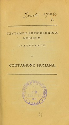 Credit: Tentamen physiologico-medicum inaugurale, de contagione humana ... / eruditorum examini subjicit Calebus Crowther. Source: Wellcome Collection.