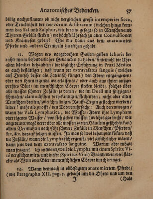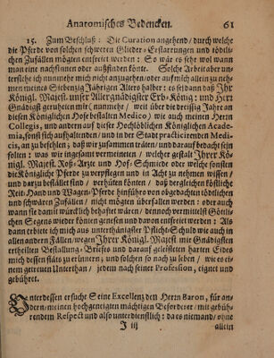 Anatomisch- und medicinisches Bedencken über ein königliches Reit-Pferd, so anatomischer Kunst nach zerlegt worden den II. Christ-Monats 1671. Welchem hinbeigefügt ... Wohlmeinender Raht wie man ... den Menschen vom Schlage und denen nachbleibenden Verlähmnissen ... curiren könne ... / Aniezzo in der zweyten Aussfertigung ... verbessert und mit einigen neuen Anmerckungen vermehret.