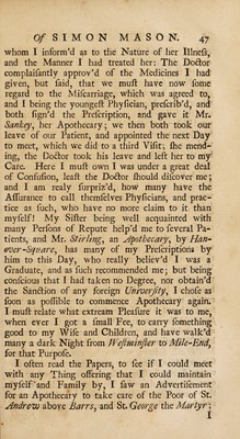 A narrative of the life and distresses of Simon Mason, apothecary : containing a series of transactions and events, both interesting and diverting.