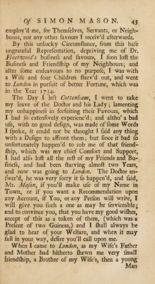 A narrative of the life and distresses of Simon Mason, apothecary : containing a series of transactions and events, both interesting and diverting.