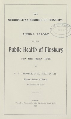 Annual report on the public health of Finsbury for the year 1925.
