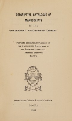 - Bombay (Presidency). Government Manuscripts Library.