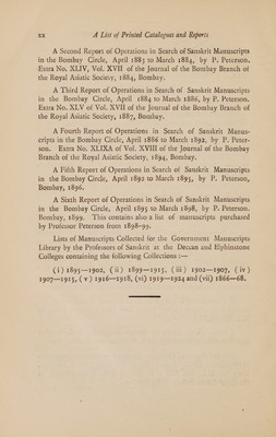 Descriptive catalogue of the government collections of manuscripts depositied at the Deccan college, Poona / comp. by the assistant to the professor of Sanskrit, Deccan college, Poona.