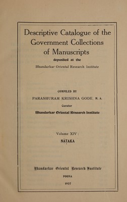 Descriptive catalogue of the government collections of manuscripts depositied at the Deccan college, Poona / comp. by the assistant to the professor of Sanskrit, Deccan college, Poona.