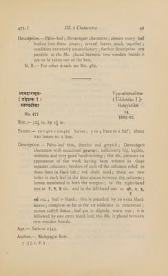 Credit: Descriptive catalogue of the government collections of manuscripts depositied at the Deccan college, Poona / comp. by the assistant to the professor of Sanskrit, Deccan college, Poona. Source: Wellcome Collection.