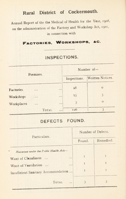 Credit: [Report 1908] / Medical Officer of Health, Cockermouth R.D.C. Source: Wellcome Collection.
