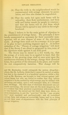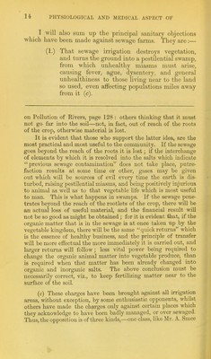 Some points in the physiological and medical aspect of sewage irrigation : the second edition of a paper read at the Social Science Congress, at Bristol, Oct. 2, 1869, with notes upon the recent evidence adduced against irrigation in the Houses of Parliament, &c. : to which is also appended, a paper on the influence of sewer gas on the public health / by Alfred Carpenter.
