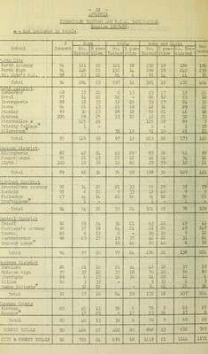 ![APPENDIX, TUBERCULIN TESTING AND B.C.G. VaCCINaTION. Session 1957-58. £§ - Not included in totals . 7° Boys Girls Boys and Girls - Re- tests School Consent ■ No. % pos- No. % pos- No. % pos- No. Vac- -Tested itlve Tested itive Tested itive c ina ted 3orth City Perth Academy 94 ! Ill 20 121 18 232 19 188 190 Perth High 94 146 25 152 14 298 19 240 239 St. John’s R.C. 93 27 22 24 4 51 14. 44 35 Total 94 284 23 297 15 H CO LPv 19 472 464 Jerth District. Dunbarney 88 15 20 O 13 23 17 19 25 Errol 97 14 22 ■12 - 26 12 23 12 Invergowrie 38 18 33 15 20 ' 33 27 24 10 Scone 34 21 43 21 19 42 31 29 22 Stanley 89 30 23 28 13 . 58 21 46 18 Methven. 100 28 25 13 ' 15 41 22 32 33 Strathallan x 125 29 125 29 89 7 Trinity College35 ' Kilgraston 1 - 1 - 1 3? 31- 19 ' 31 19 25 20 Total 90 126 23 97. 15 ' 223 22 173 120 pastern District. Blairgowrie 82 42 24 41' 29' ■83 26 61 99 Couparji Angus 95 21 43 25 12 46 2o ■ 34 11 A.lyth ] 100 19 58 10 60 29 59 12 • 11 Total 89 82 36 76 28 158 32 107 121 [ighland District Breadalbane Academy 98 34 26 21 33 55 29 39 79 Dunkeld 95 6 50 9 33 15 40 9 • 9 Pitlochry Croftinloan35 87 14 14 20 10 34 12 30 21 1 — 1 - 1 - Total 94 54 26 50 24 104 25 78 109 Central District Crieff 92 29 24 34 21 63 22 49 41 Morrison’s Academy 96 37 19 24 21 61 20 49 147 C ornrie, 83 8 13 2 - 10 10 9 12 Auchterarder _ •• • 98 23- 17 19 37 42 ■■ 26 31 24 Seymour Lodge 10 40 10 40 6 18 Total 94 97 20 79 24 176 22 138 224 Western District Dunblane 86 21 10 21 U 42 12 37 17 McLaren High 97 37 22 33 18 70 20 56 80 Aberfoyle - 83 - 6 17 10 30 16 25 12 4 Killin 80 3 33 — 3 33 2 3 Queen Victoria 32 22 - 32 22 25 J6_ Total 91 67 18 64 19 131 18 107 104 Kinross County Kinross 80 40 13 36 6 76 9 69 29 Naemoor 17 29 6 17 23 26 17 8 Total 80 40 13 36 6 76 9 69 29 COUNTY TOTALS 90 466 25 402 20 868 23 672 707 CITY & COUNTY TOTALS 92 750 24 699 18 1149 21 1144 1171](https://iiif.wellcomecollection.org/image/b28658012_0026.jp2/full/800%2C/0/default.jpg)
