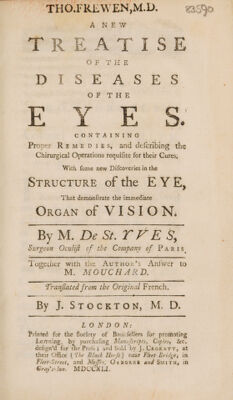 A new treatise of the diseases of the eyes containing proper remedies, and describing the chirurgical operations requisite for their cures. With some new discoveries in the structure of the eye, that demonstrate the immediate organ of vision / by M. De St. Yves ... ; Together with the author's answer to M. Mouchard [i.e. Mauchart] ... Translated from the original French by J. Stockton.