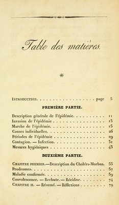 Credit: Rapport sur le choléra-morbus de Paris / présenté à M. le maire et au Conseil municipal de Lyon par Trolliet, Polinière et Bottex, formant la commission envoyée à Paris par le ville de Lyon et désignée par l'Intendance sanitaire et la Société de médecine. Source: Wellcome Collection.